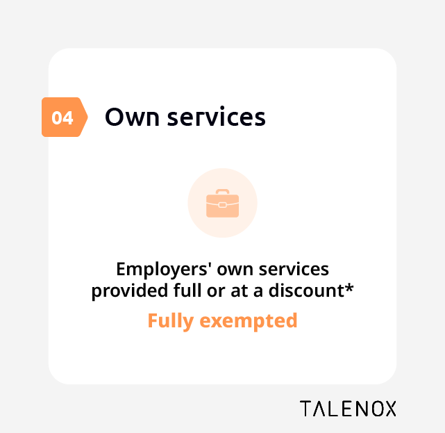 - Employers’ own goods and/or services